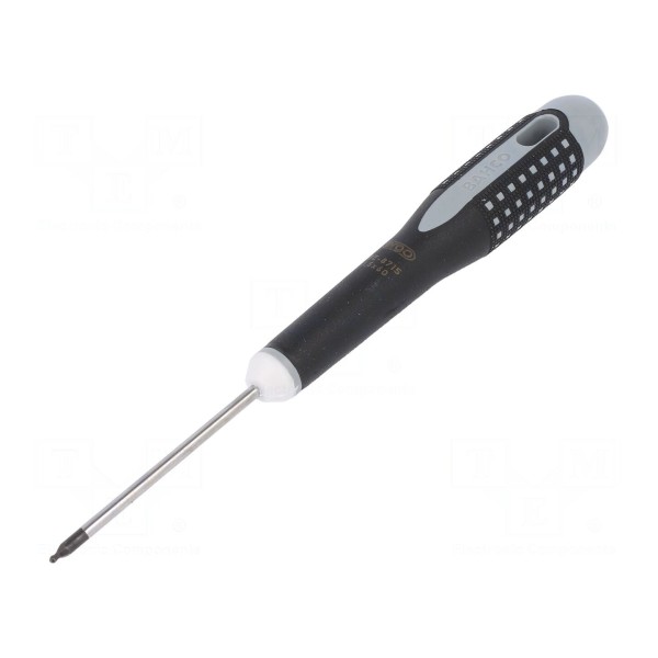 Wkrętak standardowy wyposażony w grot imbusowy typu kulistego w rozmiarze HEX 1,5mm. Konstrukcja końcówki umożliwia pracę pod różnymi kątami, co ułatwia dostęp do śrub w miejscach o ograniczonej przestrzeni.