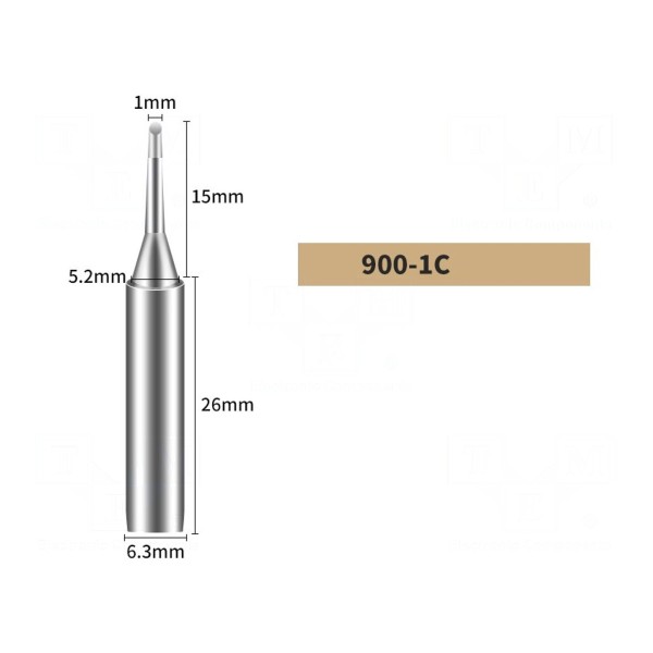 Grot przeznaczony jest do lutownic grzałkowych pracujących w stacjach lutowniczych. Element charakteryzuje się kształtem typu kopytko oraz wymiarem końcówki wynoszącym 1mm.