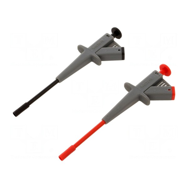 Konstrukcja chwytaka umożliwia stabilne połączenie w obwodach elektrycznych. Zestaw obejmuje dwa elementy w kolorze czarnym i czerwonym, co ułatwia identyfikację polaryzacji podczas wykonywania pomiarów. W zestawie: chwytak pomiarowy x2.