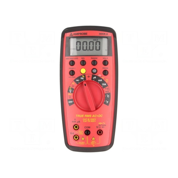 Multimetr cyfrowy BEHA-AMPROBE 38XR to przyrząd umożliwiający pomiar napięcia AC/DC do 1000V/750V, prądu AC/DC do 10A, rezystancji, pojemności, częstotliwości oraz temperatury w zakresie -20...1300°C. Urządzenie mierzy rzeczywistą wartość skuteczną True RMS AC+DC i posiada dedykowaną funkcję pomiaru pętli prądowej 4-20mA w zakresie 0-100%. Wyniki prezentowane są na wyświetlaczu LCD o rozdzielczości 4,75 cyfry (9999) wspieranym przez 41-segmentowy bargraf oraz podświetlenie.