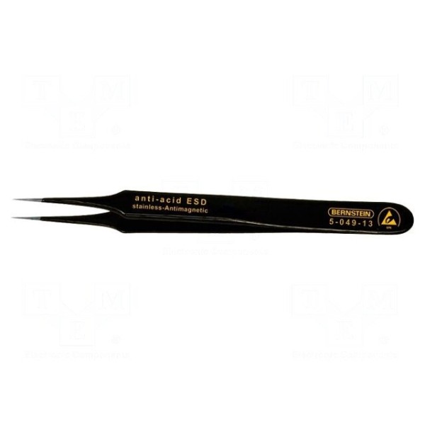 Pęseta prosta o długości 110mm przeznaczona do prac precyzyjnych. Wykonana ze stali nierdzewnej, wykazuje właściwości niemagnetyczne oraz odporność na większość kwasów. Narzędzie zostało zaprojektowane w wersji ESD, co pozwala na bezpieczne wykorzystanie w strefach chronionych przed wyładowaniami elektrostatycznymi.