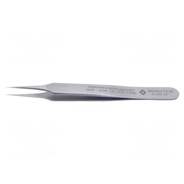 Pęseta o długości 110 mm wykonana jest ze stali nierdzewnej. Narzędzie posiada prostą konstrukcję oraz zwężone ostrza z ostrym zakończeniem, co umożliwia precyzyjną pracę.