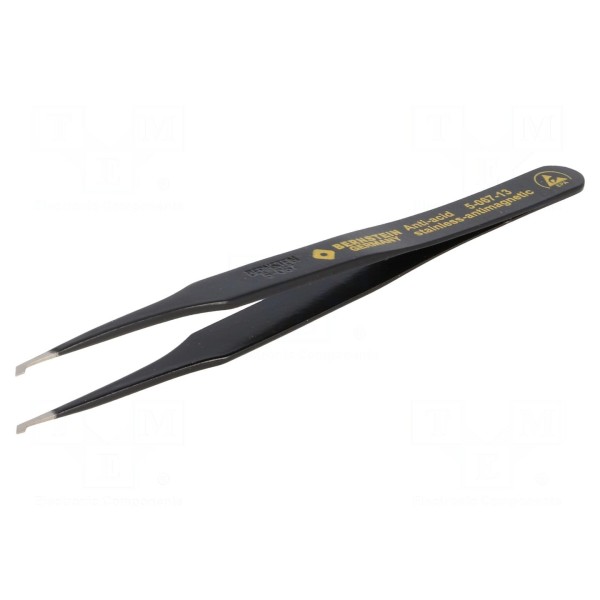 Pęseta ESD 120mm ze stali nierdzewnej, końcówka płaska zagięta