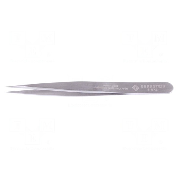 Pęseta BERNSTEIN 5-072 to proste narzędzie wykonane ze stali nierdzewnej, zaprojektowane do prac uniwersalnych. Całkowita długość przyrządu wynosi 110 mm.