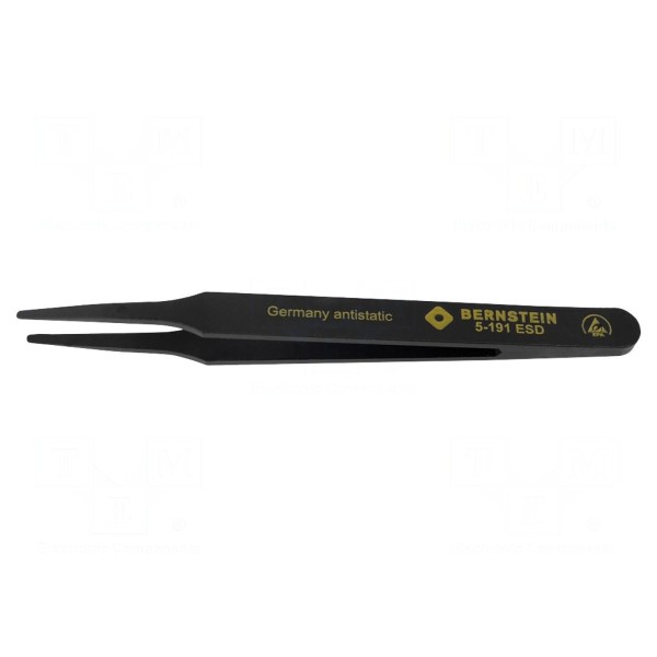Pęseta wykonana z plastiku w wersji ESD, przeznaczona do prac wymagających ochrony przed wyładowaniami elektrostatycznymi. Narzędzie charakteryzuje się długością wynoszącą 120 mm.