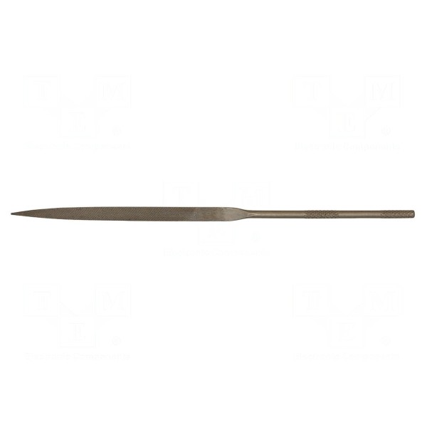 Pilnik iglak typu mieczowego o długości całkowitej 140 mm służy do obróbki precyzyjnej materiałów. Kształt przekroju poprzecznego umożliwia docieranie do trudno dostępnych miejsc oraz obróbkę wykańczającą krawędzi.