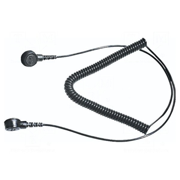 Przewód łączeniowy typu ESD w wykonaniu spiralnym przeznaczony jest do sprawnego uziemiania komponentów w strefach chronionych przed wyładowaniami elektrostatycznymi. Element wyposażony jest w zatrzaski żeńskie o średnicach 4 mm oraz 10 mm, co umożliwia uniwersalne połączenie z osprzętem antystatycznym. Długość przewodu po maksymalnym rozciągnięciu wynosi 2,4 m.