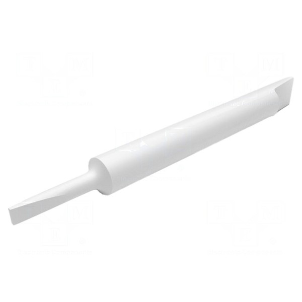 Wkrętak typu ostrze wyposażony jest w płaski grot o rozmiarze 1,3x0,3mm. Część robocza narzędzia została wykonana z ceramiki, co determinuje jego właściwości użytkowe w specyficznych warunkach pracy.