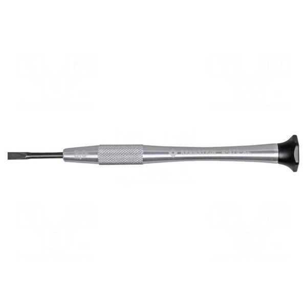 Wkrętak precyzyjny wyposażony w grot płaski o rozmiarze 3x0,5mm. Narzędzie posiada ostrze o długości 22mm oraz całkowitą długość wynoszącą 100mm.