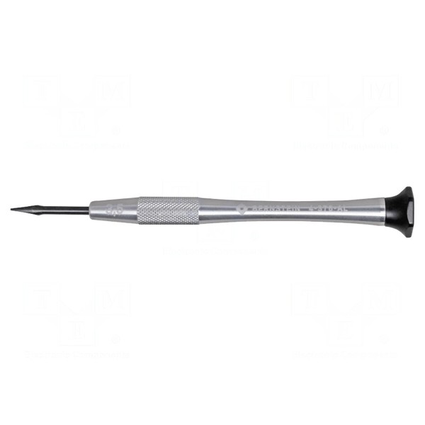 Precyzyjny wkrętak płaski o rozmiarze grota 3,5x0,6mm przeznaczony jest do prac wymagających wysokiej dokładności. Długość ostrza tego narzędzia wynosi 22mm, co umożliwia operowanie w ograniczonych przestrzeniach.