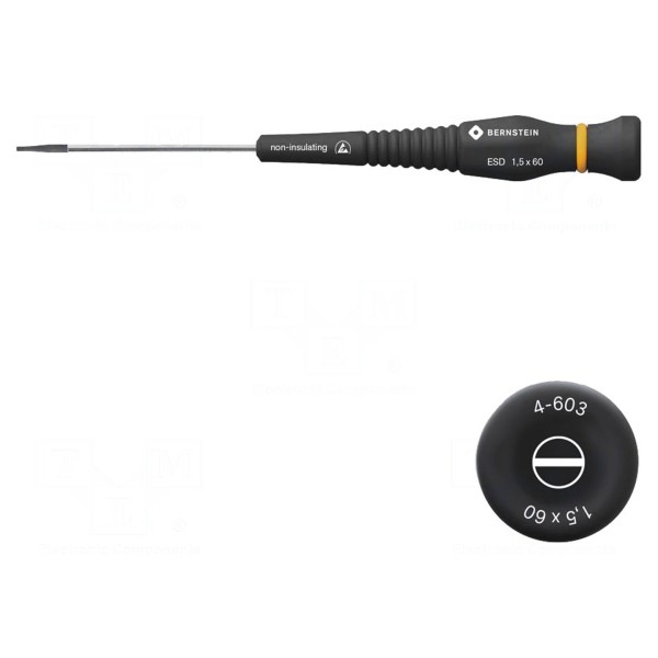 Wkrętak precyzyjny płaski 1,5x0,25mm, ostrze 60mm, wersja ESD