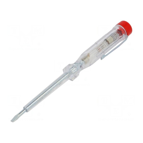 Wkrętak pełni funkcję próbnika napięcia i jest wyposażony w izolację. Narzędzie posiada płaski grot o wymiarach 3x0,7mm.