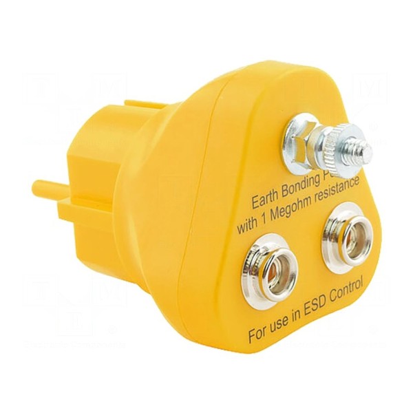 Wtyk uziemiający przeznaczony do systemów ochrony przed wyładowaniami elektrostatycznymi ESD. Element wyposażony jest w dwa rezystory o wartości 1MΩ każdy, co zapewnia zgodność z wymogami bezpieczeństwa podczas odprowadzania ładunków.