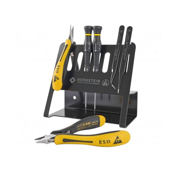 W zestawie: pęsety, stojak, szczypce, wkrętaki ESD.