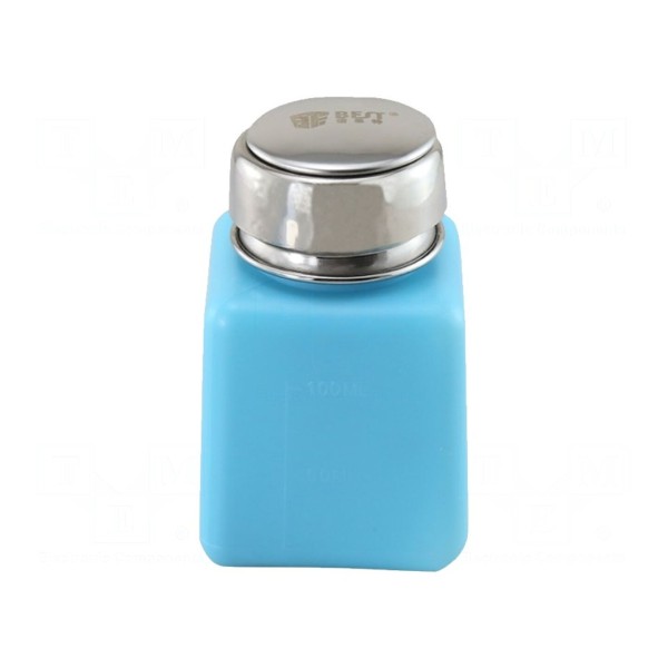 Butelka dozująca o pojemności 0,1l została wykonana z polietylenu. Urządzenie wyposażono w funkcjonalną, wbudowaną pompę, której elementy konstrukcyjne wyprodukowano ze stali nierdzewnej.