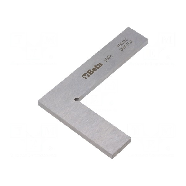 Kątownik marki BETA o wymiarach 100x70mm został wykonany ze stali. Narzędzie jest zgodne z wymogami normy DIN 875-2.