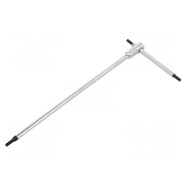 Klucz imbusowy typu T przeznaczony do prac montażowych z elementami z gniazdem sześciokątnym HEX 2,5mm. Narzędzie o długości całkowitej 150mm wyposażone jest w rękojeść typu T, która ułatwia chwyt i pozwala na efektywne przenoszenie momentu obrotowego podczas pracy.