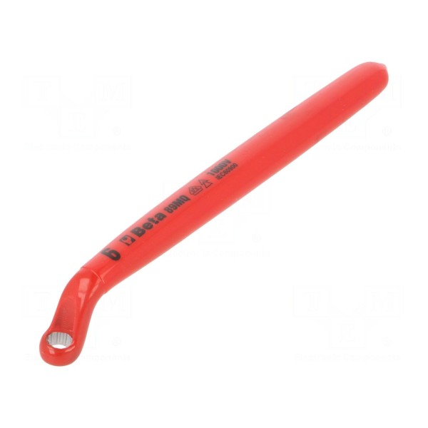 Klucz oczkowy jednostronny marki Beta to izolowane narzędzie przeznaczone do prac wymagających ochrony przy kontakcie z instalacjami pod napięciem. Konstrukcja narzędzia została wykonana zgodnie z wymogami normy EN 60900 oraz VDE, co zapewnia właściwości dielektryczne niezbędne w pracy serwisowej.