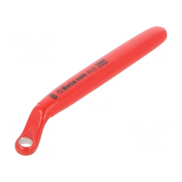 Klucz oczkowy jednostronny marki Beta przeznaczony jest do prac z elementami złącznymi o rozmiarze 8mm. Narzędzie posiada izolację, co pozwala na bezpieczne użytkowanie w środowiskach wymagających ochrony przed porażeniem prądem elektrycznym.
