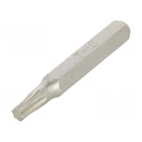 Końcówka wkrętakowa typu Torx o oznaczeniu TX10 przeznaczona jest do prac wymagających wysokiej precyzji. Element wykonano w standardzie precyzyjnym, co pozwala na stabilne osadzenie w kompatybilnych narzędziach ręcznych.
