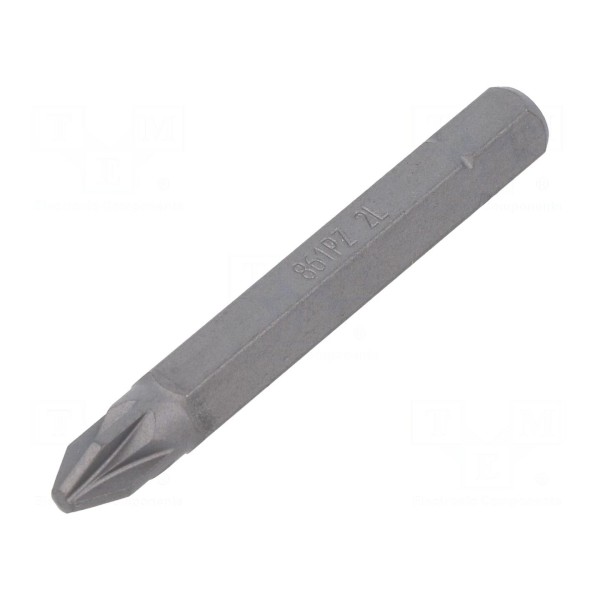 Końcówka wkrętakowa typu Pozidriv o rozmiarze PZ2 przeznaczona jest do prac montażowych. Element charakteryzuje się długością całkowitą wynoszącą 25 mm.