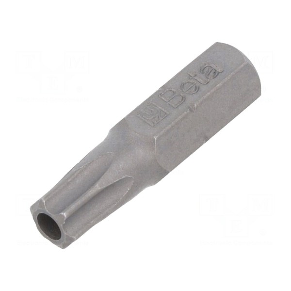 Końcówka wkrętakowa o profilu Torx z zabezpieczeniem w rozmiarze T30H przeznaczona jest do pracy z odpowiednimi śrubami zabezpieczającymi. Produkt posiada gniazdo montażowe o rozmiarze 1/4" oraz standard uchwytu C6,3mm, co umożliwia współpracę z szeroką gamą uchwytów narzędziowych.