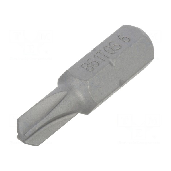Końcówka wkrętakowa typu Torq-Set w rozmiarze TS6 przeznaczona jest do współpracy z uchwytami o standardzie 1/4" (C6,3mm). Element posiada długość całkowitą wynoszącą 25mm.