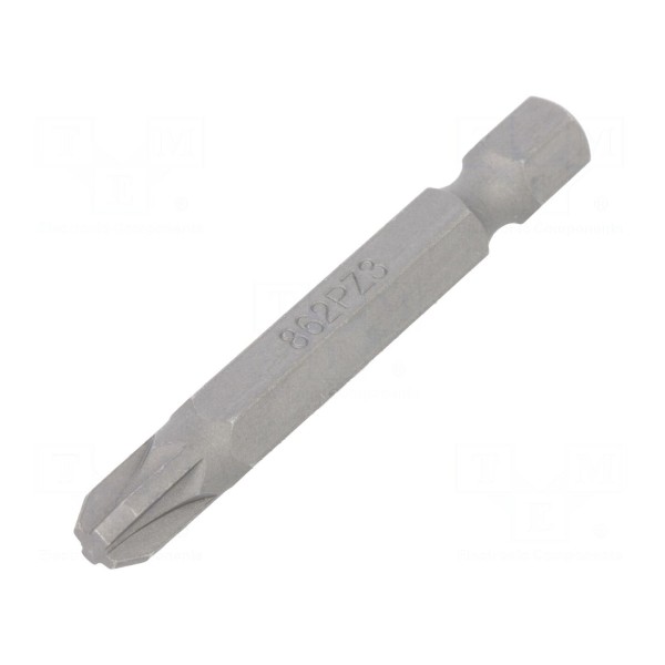 Końcówka wkrętakowa przeznaczona do wkrętów z gniazdem typu Pozidriv w rozmiarze PZ3. Element posiada uchwyt o standardzie E6,3mm, co odpowiada rozmiarowi 1/4".