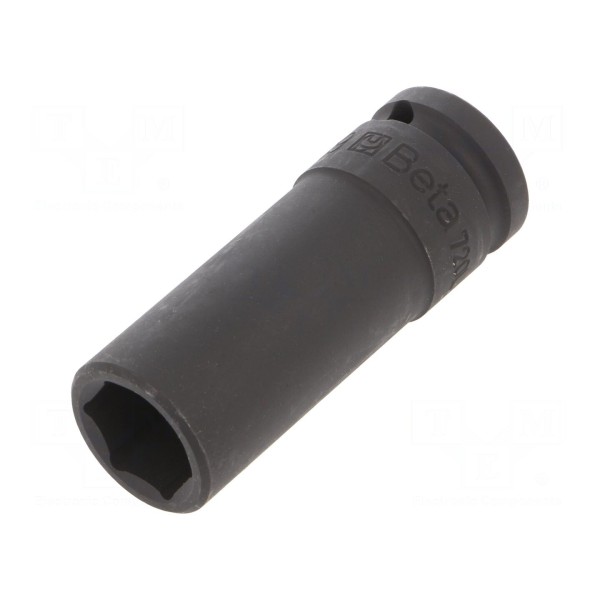 Nasadka udarowa BETA 720L/19 to narzędzie typu 6-kątnego, przeznaczone do pracy z kluczami udarowymi. Posiada gniazdo montażowe o rozmiarze 1/2" oraz profil roboczy HEX 19mm. Wersja długa charakteryzuje się wymiarem 80mm, co umożliwia dostęp do śrub w miejscach o ograniczonej przestrzeni.
