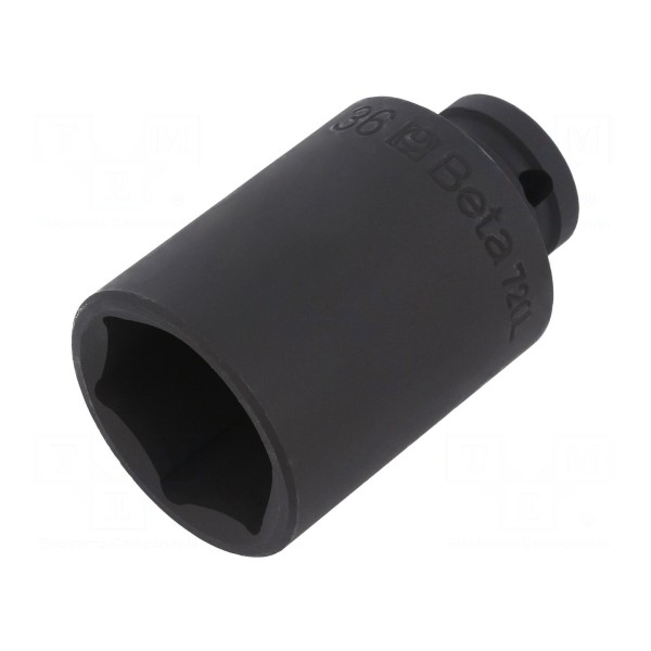 Nasadka udarowa 6-kątna w wersji długiej przeznaczona jest do pracy z kluczami o napędzie 1/2 cala. Element charakteryzuje się rozmiarem gniazda HEX 36mm oraz całkowitą długością wynoszącą 80mm.