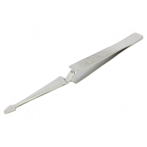 Pęseta o długości 155 mm przeznaczona jest do zastosowań uniwersalnych. Narzędzie charakteryzuje się prostym kształtem końcówek, co umożliwia precyzyjną manipulację małymi elementami.