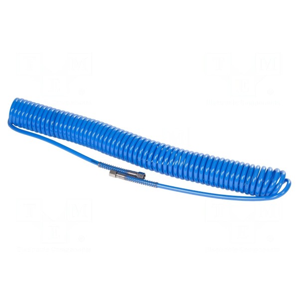 Wąż pneumatyczny spiralny o długości całkowitej 12 m. Konstrukcja węża charakteryzuje się średnicą wewnętrzną 6,5 mm oraz średnicą zewnętrzną 10 mm.