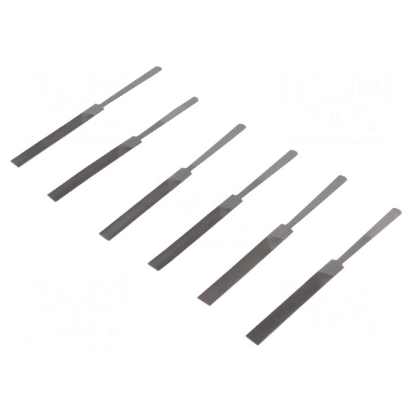 Konstrukcja pilników o płaskim kształcie przekroju umożliwia dostęp do trudno dostępnych miejsc w mechanizmach przerywaczy. Komplet dostarczany jest w opakowaniu zbiorczym zawierającym wszystkie jednostki z zestawu.