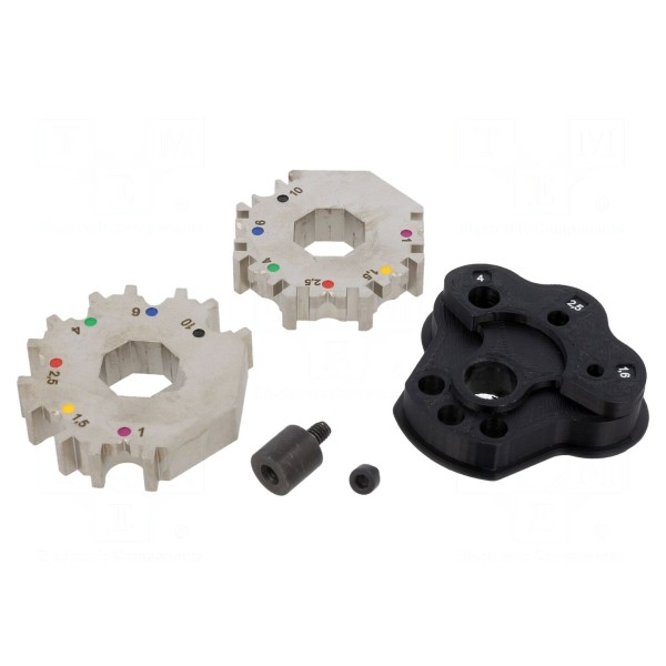 Szczęki do zaciskania przeznaczone są do obróbki konektorów nieizolowanych. Element wykonany jest ze stali o twardości ostrza wynoszącej ok. 66 HRC, co zapewnia wytrzymałość podczas pracy narzędzia.