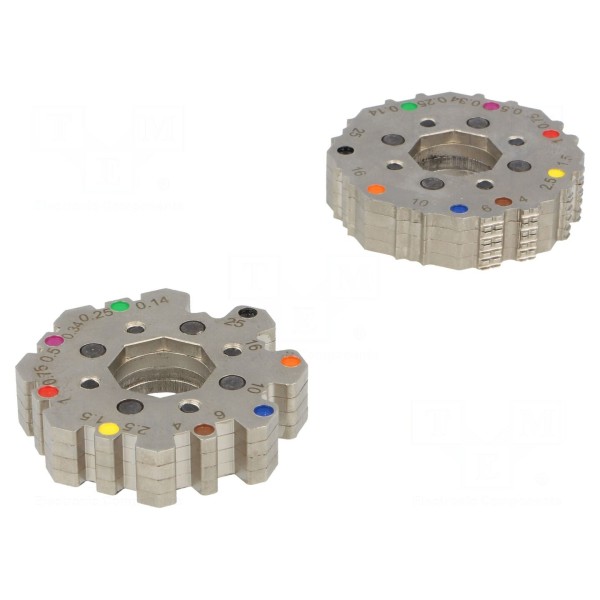 Komponent obsługuje przewody o przekrojach: 0,14mm², 0,25mm², 0,34mm², 0,5mm², 0,75mm², 1mm², 1,5mm², 2,5mm², 4mm², 6mm², 10mm² (0,1cm²), 16mm² oraz 25mm². Powierzchnia elementu została poddana niklowaniu i polerowaniu, a twardość ostrza wynosi około 66 HRC.