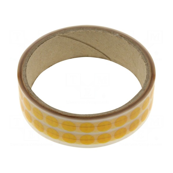 Elementy samoprzylepne znajdują zastosowanie jako osłona części płytek drukowanych PCB podczas procesu lutowania na fali. Opakowanie zbiorcze zawiera 1000 sztuk punktów w formie rolki. Kolor produktu to złoty.