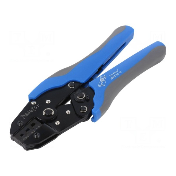 Narzędzie przeznaczone jest do zaciskania konektorów nieizolowanych oraz terminali. Obsługuje przewody o przekroju w zakresie od 0,5 do 6mm².