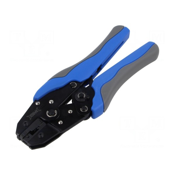 Narzędzie przeznaczone jest do zaciskania konektorów izolowanych kątowych. Zakres obsługiwanych przekrojów przewodów mieści się w przedziale od 1mm² do 2,5mm², co odpowiada rozmiarom przewodów od 18AWG do 14AWG.