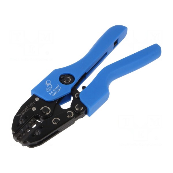 Narzędzie do zaciskania przeznaczone jest do obróbki końcówek nieizolowanych oraz tulejkowych nieizolowanych. Zakres pracy urządzenia obejmuje przewody o przekroju od 0,5 do 10 mm².