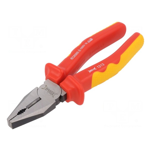 Szczypce uniwersalne o długości 200mm przeznaczone do prac elektroinstalacyjnych. Narzędzie posiada izolację spełniającą wymogi normy IEC 60900 oraz VDE, co zapewnia ochronę podczas pracy pod napięciem.