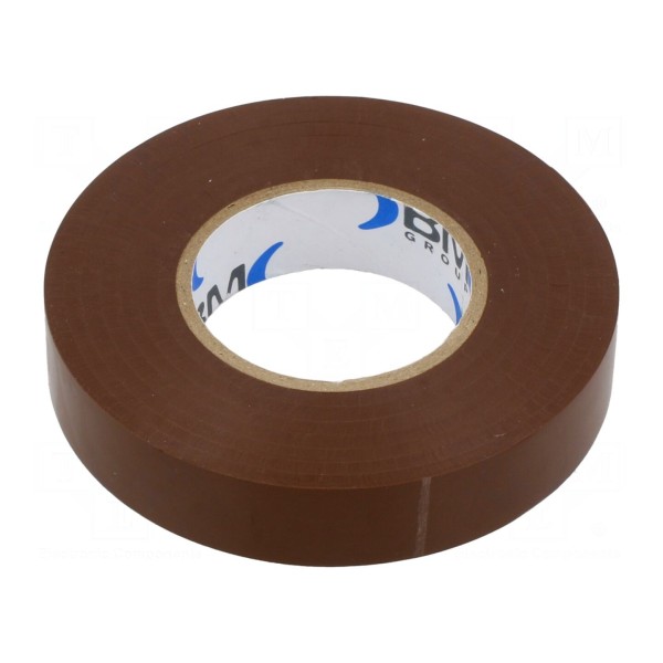 Taśma elektroizolacyjna wykonana na nośniku z folii PVC charakteryzuje się szerokością 15 mm, długością 25 m oraz grubością 0,15 mm. Produkt posiada kolor brązowy i wykazuje wytrzymałość dielektryczną na poziomie 45 kV/mm. Jest przeznaczona do pracy w zakresie temperatur od 0°C do 90°C.