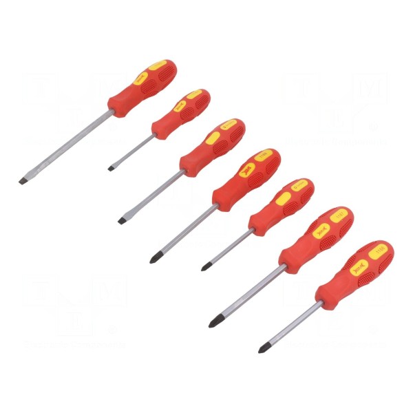 Zestaw 7 izolowanych wkrętaków Phillips, Pozidriv i płaskich 1kV