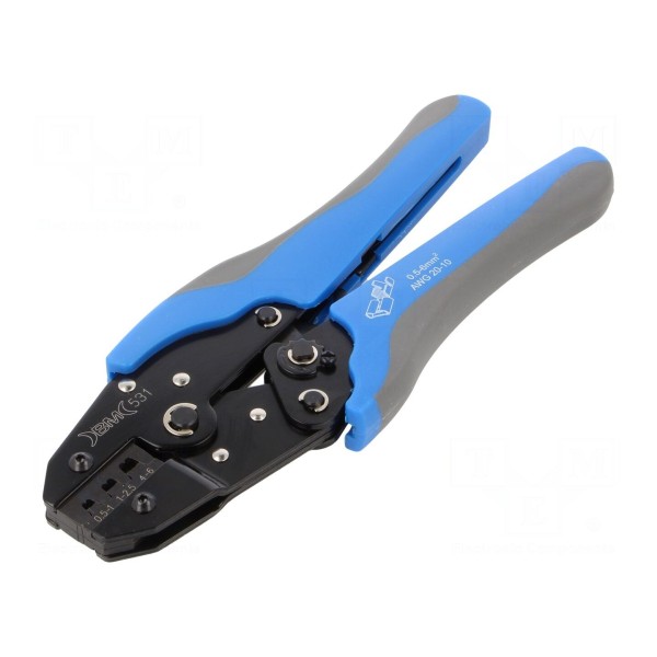 Zestaw narzędzi przeznaczony jest do zaciskania konektorów oraz końcówek nieizolowanych. Urządzenie obsługuje przewody o przekroju od 0,5 mm² do 6 mm².