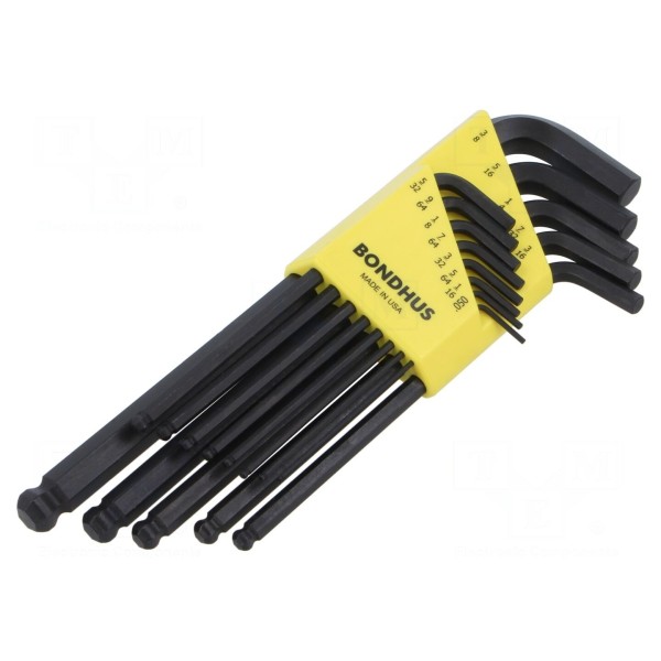 Zestaw 13 kluczy imbusowych calowych, długie, kuliste