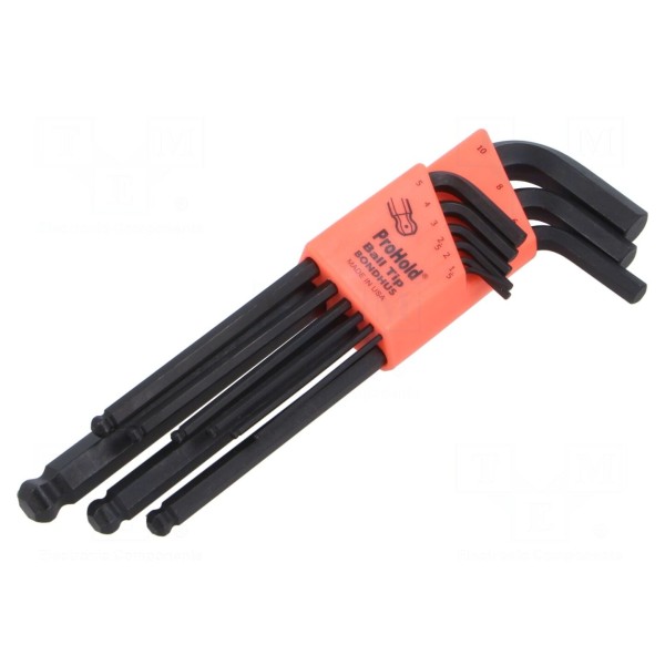 Zestaw 9 długich kluczy imbusowych z kulistą końcówką