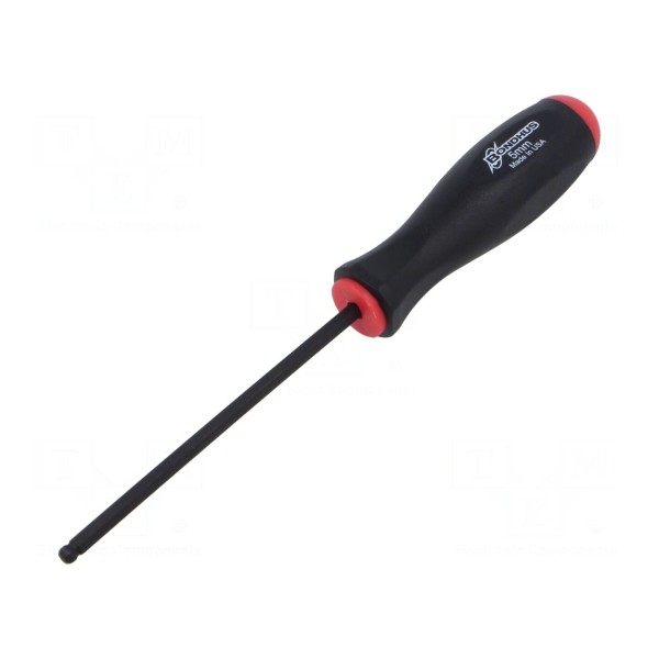 Wkrętak standardowy z grotem typu imbus kulisty o rozmiarze HEX 5mm przeznaczony jest do prac montażowych oraz serwisowych. Ostrze o długości 109mm zostało wykonane ze stali ProTanium, zapewniającej trwałość narzędzia podczas eksploatacji. Końcówka ostrza posiada czernioną powłokę.