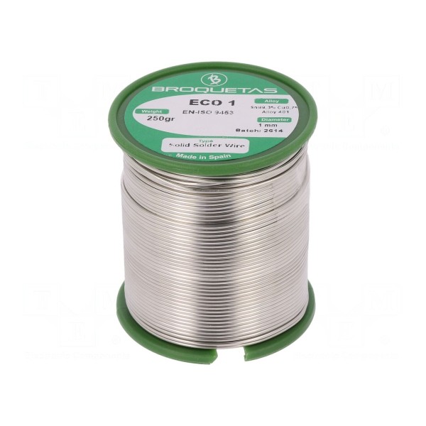 Spoiwo bezołowiowe w formie drutu lutowniczego o składzie Sn99,3Cu0,7 przeznaczone jest do procesów lutowania miękkiego. Produkt charakteryzuje się temperaturą topnienia wynoszącą 220°C i średnicą drutu 1mm.