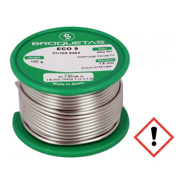 Spoiwo w postaci drutu lutowniczego o składzie stopu Sn99Cu0,7Ag0,3 jest przeznaczone do lutowania miękkiego. Drut o średnicy 1,5 mm zawiera topnik SW26 typu halogenkowego i kalafoniowego, zgodny ze standardem ROM1 oraz klasyfikacją No Clean.