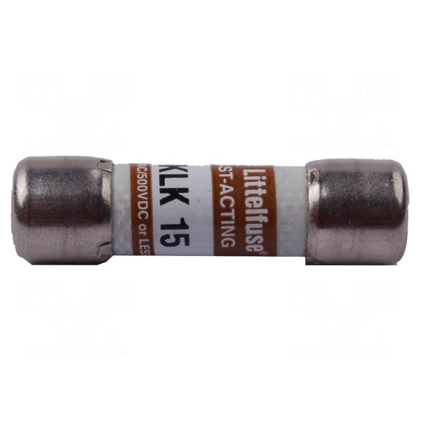 Bezpiecznik 15A, napięcie znamionowe 0,6kV, wymiary 10x38mm