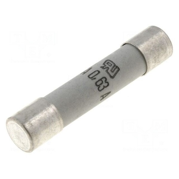 Bezpiecznik przeznaczony do mierników elektrycznych. Element charakteryzuje się prądem znamionowym wynoszącym 0,63A oraz napięciem znamionowym na poziomie 0,5kV.